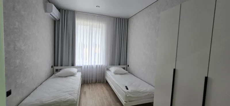 Интерьер выполнен в современном, спокойном стиле: мягкие оттенки, продуманная планировка и удобная мебель создают атмосферу расслабления. В номере предусмотрены зоны для отдыха, хранения вещей и комфортного сна — всё, чтобы пребывание было по-домашнему приятным.